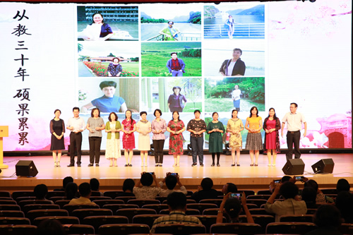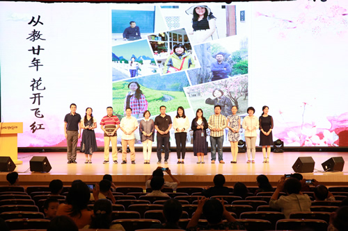 9月14日下午,我校教职员工齐聚优米体育总部地址电话会堂,庆祝第34个教师节。