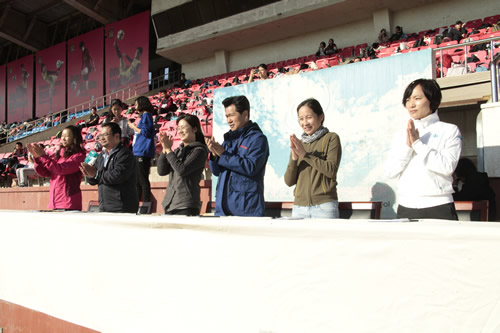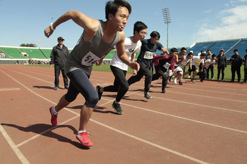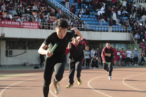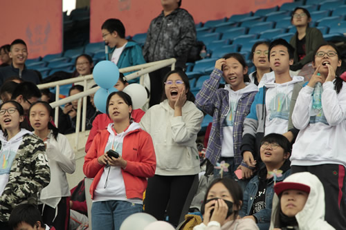 赛场上,运动健儿们激情飞扬,奋力拼搏;主席台边志愿者们慷慨激昂的读着各班同学写给运动员的加油稿,整个场面热闹非凡。运动会在一阵阵的加油声和掌声中被推上了高潮。