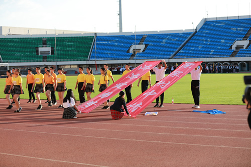 在本次运动会中,学生们本着“友谊第一,比赛第二”的运动精神参加比赛,赛出了风格,赛出了水平。值得一提的是高二4班潘元媛同学在实心球项目上以11.65米的成绩打破自己保持的校运会记录。