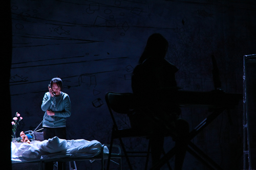 这次的《暗恋桃花源》与赖声川的经典版有些不同,在演出开始前的半个小时,就有许多演员在台上台下的穿梭了。像是排练一样,有人喊着要吃饭,有人却坐在台上玩着手机,甚至演出开始了,场灯都没有关,一小段内容愣是在现场演了三遍,简直让观众摸不着头脑。正当“排练”进入正轨时,《桃花源》剧组闯了进来,于是,抢剧场真真实实的发生了。是的,有人一不小心安排了两个剧组在今天晚上同时做舞台合成,《暗恋》与《桃花源》就这样交错上演了。