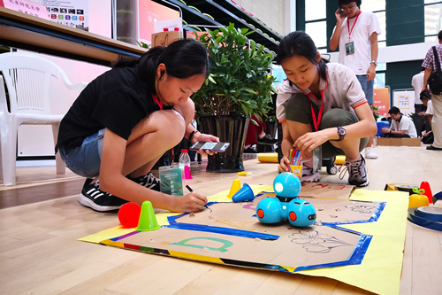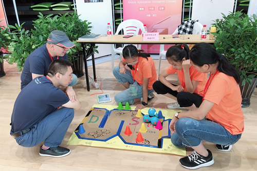 我校入围作品是用Dash机器人模拟地震废墟中的营救路线开辟,四位选手上学期在指导老师的带领下,利用午休和放学后的时间学习编程、制作废墟地形、录编视频,于6月底完成“Dash Miracle”项目并提交参赛。作品入选20强优秀作品,这次有幸与来自杭州、北京、上海等地的20组作品共同参展、分享交流,并有机会了解大学生们开发的移动应用APP,开拓眼界的同时,更进一步鼓励学生们通过编程语言来体验发现问题、分析问题、解决问题的过程。