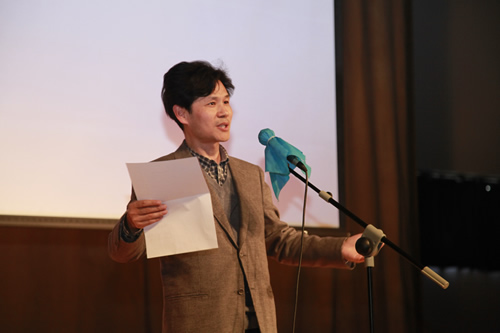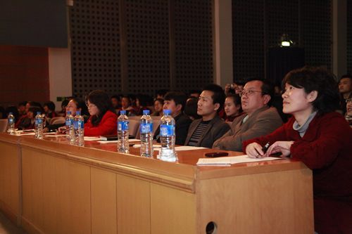 小河轻快的旋律渐渐低沉,化作一条条小溪涓涓溪流般的低吟浅唱。朗诵会进入第三章――“我思故我在”。高一(8)班郭冰峰、吴秉翰同学的原创诗歌《我和他》,一声一声,叩在听众们的心上,引发了同学们的思考。新诗朗诵会伴着高一(5)班李一宁同学深沉而激情的《相信未来》落下帷幕。同学们在诗歌的王国里经历了一次心灵的洗礼与精神的升华。 梁原草副校长前来参加此次朗诵会并作了简短精彩的点评。