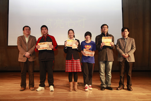 2012年3月30日星期五,高一年级全体学生在礼堂举办了“点亮心灯”主题新诗朗诵会。朗诵会根据学生选材分为三个主题:“我爱你中国”、“心灵的吟唱”、“我思故我在”。