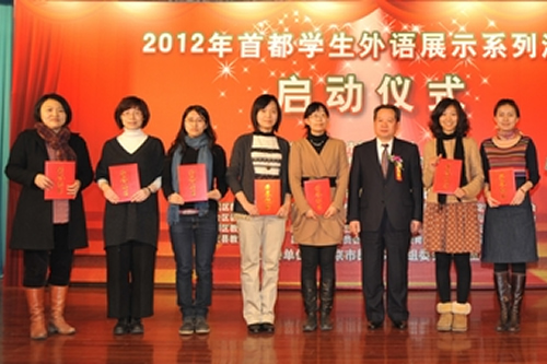 此竞赛由北京市教委、北京市国际教育交流中心、北京电视台青年频道、北京市青少年音像出版社主办,各区县教委承办,并由北京市民讲外语组委会主持。在往年的基础上,本次大赛今年受到了各区县教委和学校的高度关注,报名人数创历史新高,共有来自13个区县80多所学校的千名师生报名参加。其中,初中组配音比赛共有来自北京市10个区50多所学校的60个节目报名参加,参与师生数500余人;高中组英语戏剧比赛共有来自北京市13个区30多所学校的42支队伍报名参加,参与师生400多人。例如:北京四中、北京八中、师大附属实验中学、人大附中等等均有代表队参加,其中很多代表队还有一定数量的有外籍学生参与。我校代表队虽然不具备这项优势,但是在全体初二英语组教师的努力和年级电影配音活动的海选下、尤其是在李学珍老师的精心雕琢和训练下,参赛同学的英文表达水平、语言表现能力、人物声音定位等方面得到了显著提高。并且在竞赛当天,学生们充分发挥才艺,配以现场笛子演奏、电影曲目演唱等形式,将原电影音效果模仿得淋漓尽致,从而在众多竞争之中脱颖而出。学生的精彩表演不仅得到了在场评委和参赛选手的赞誉,也同时在比赛的第二天作为唯一一张图片新闻刊登在北京青年报上并转载于网络中,为学校赢得了荣誉。当然,这一成绩的取得也与刘晓杰老师在这一过程中一直不断给与的技术支持密不可分,初二英语备课组在此特别表示感谢!