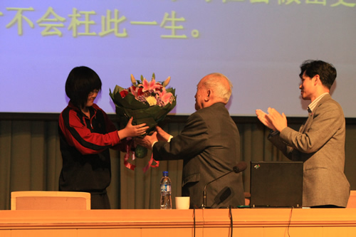 梁思礼院士的演讲主要分为三大部分。他首先j简单介绍了航天的基本概念和相关知识,接着全面介绍了中国航天事业的发展历程以及当前中国发展载人航天、探月工程的详细进展,最后,梁老结合自身的学习、成长经历与学生一起探讨素质教育的问题。梁老全心投入的演讲不时引起同学们经久不息的热烈掌声,同学们既为中国航天取得的伟大进步欢欣鼓舞,也从梁思礼院士身上充分领略到了老一辈学者的精神风采,同时深深体会到了什么是真正的爱国主义情怀。