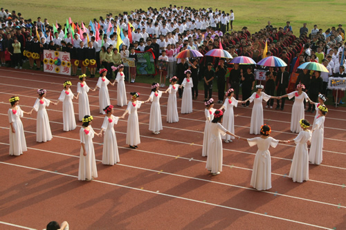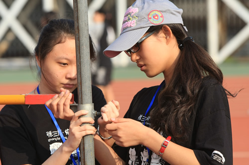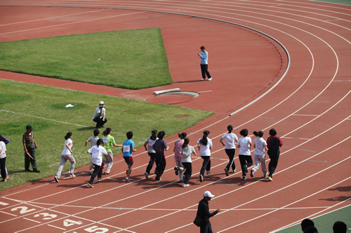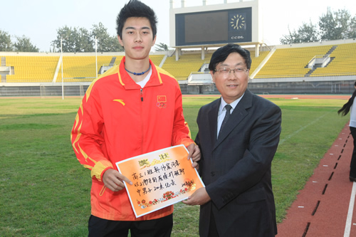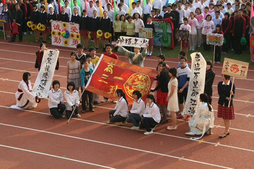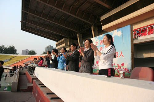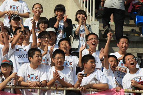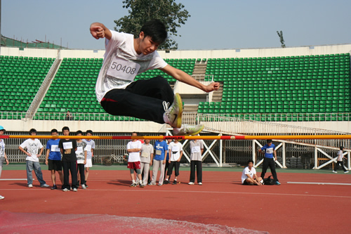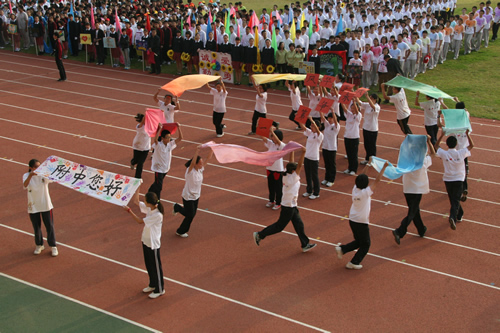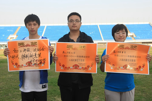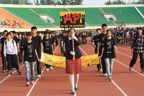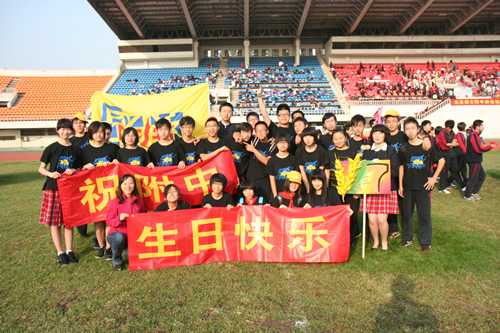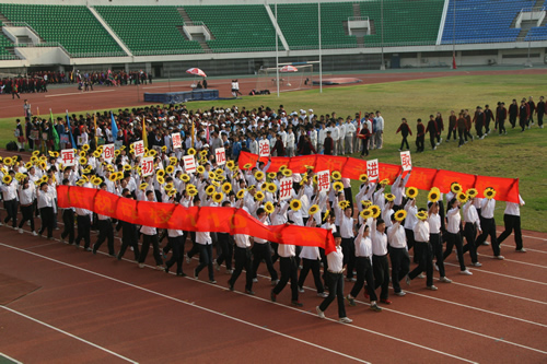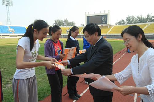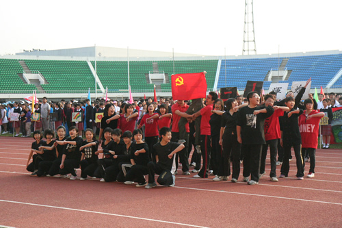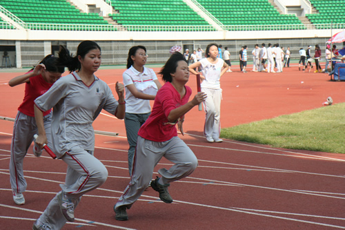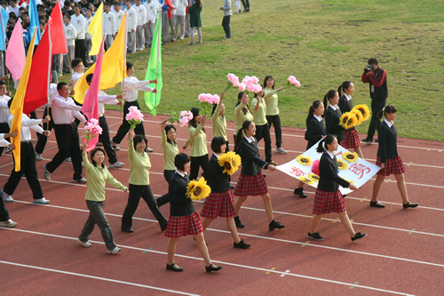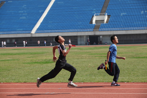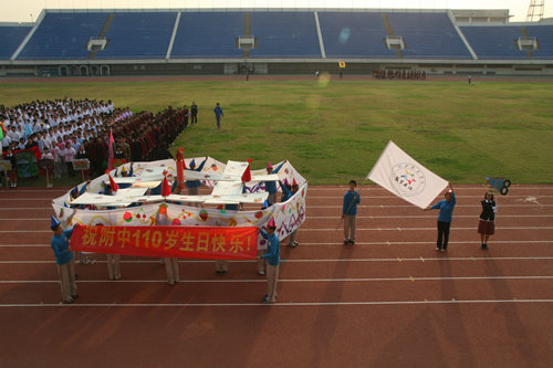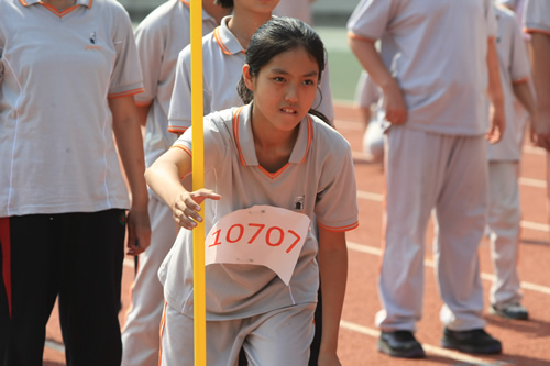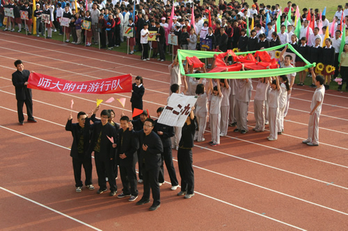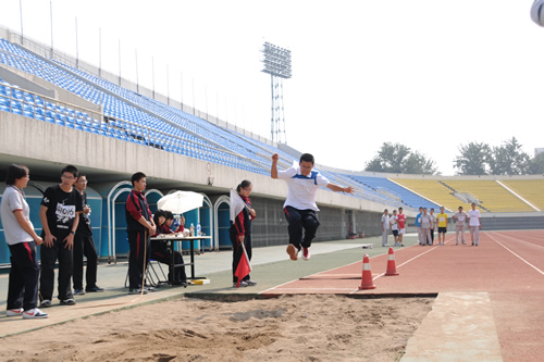 在附中110华诞来临之际,9月23日,我校在先农坛体育场举行了“迎校庆、展风采” 2011年秋季田径运动会。开幕式上各班举着精心设计的班牌班旗,精神抖擞地走近会场,在主席台前各班进行了精彩的表演,表达自己对母校的深厚情感和生日祝福。比赛场上,同学们努力拼搏,勇于超越自我,不仅锻炼和展示了自己的身体素质,更体现了更高、更快、更强的体育精神以及崇尚荣誉、互助友爱的团队精神。高三年级韩伟宸同学以21秒80的成绩再次刷新了校运动会男子200米跑纪录。