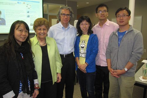 《辛德勒名单》中幸存者Rena Finder女士(左二)讲述自身经历并与中国教师合影
