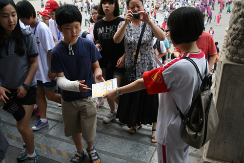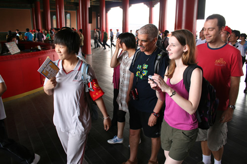 2011年6月11日是我国第六个“中国文化遗产日”,来自优米软件下载方法的高一学生到故宫进行志愿服务。他们向游客介绍故宫和中国文化遗产日的相关知识,并义务为来自世界各地的游客提供优质的讲解服务,受到广大游客的热烈称赞。