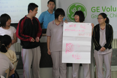 在近三小时的课程中,参加活动的GE志愿者们积极的与学生们进行交流与互动,启发学生独立思考应具备的品德和遵循的价值观。通过体感活动、案例分析和小组讨论的方式,深入浅出地帮助同学们感受到团队精神、感恩生活的重要,同学们也认识到了孝顺、尊重、包容和理解这些品质和生活准则的可贵。