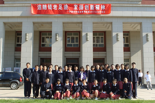 2011年5月14日,我校高一钱学森班的同学们来到中国科学院力学研究所,参加了由该所举办的“追随钱老足迹,发扬创新精神”的公众开放日活动。钱学森是我校著名校友,曾任中国科学院力学研究所首任所长,此次活动是纪念钱学森先生诞辰100周年的系列活动之一。活动中,我校同学代表发言,介绍了我校师生学习钱学森学长、发扬创新精神方面的做法和体会,以及对钱老精神的深刻理解。同学们听取了中国科技大学黄吉虎教授精彩的讲座;参观了中科院力学所的波浪海流模拟水槽实验室、管风洞试验室;并参与了各项动手制作与操作活动。