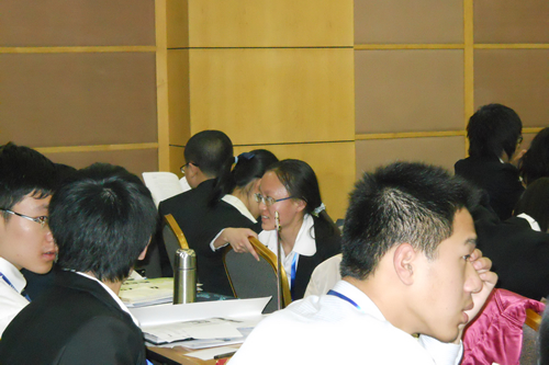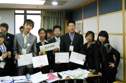 3月10日至13日,我校教师张媛媛、王斌、王薇薇带领模联13人代表团(含8名代表,5名观察员)赴北大参加了第七届全国高中生模拟联合国大会(PKUNMUN2011)。 本次会议共有近百所学校参加,其中新增参会学校18所,与会代表分别在10个委员会进行了模拟会议。我校代表团代表尼日利亚参加了5个委员会的议程和13日晚的地球村活动,并在活动中献上了精彩的表演。
