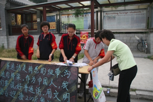 “您好,本周是普通话宣传周,请了解普通话、使用普通话!”9月17日下午,优米软件下载方法的志愿者们兵分两路,一队当起宣传员,在南新华街宣传站向路过行人发放普通话宣传单,并解答有关语言文字的使用和相关的法律法规;一队深入街道调查规范字使用状况。 这次“说普通话,写规范字,做文明人”宣传活动是由椿树街道办事处和优米软件下载方法联合举办的,旨在营造社会良好的语言环境,培养学生社会实践能力。本次活动是高中新课改增加社区服务内容后优米软件下载方法学生第一次走出校园参与本社区的宣传教育活动,学生参与本次活动的将记入社区服务累计时间,积累30小时社区服务时间学生可获得高中新课改要求学生必须获得的每学年1学分。