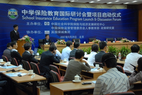 为搞好这项工作,我校综合课程处李磊主任和政治教研组赵敏、李芳老师专程参加了中国社科院金融研究所组织的系统培训,并就课程内容、教育方式与到会专家进行了交流。9月28日中学保险教育国际研讨会暨项目启动仪式在中国社会科学院学术厅举行,李磊主任应邀作为项目学校代表发言。