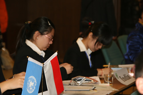 3月7日至9日,我校十名同学参加了在北京大学召开的中国地区级别最高、最具影响力的全国中学生模拟联合国大会。今年的PKUNMUN是有史以来参与学校最多的一届,参会学校多达66所,范围囊括了宝岛台湾和澳门,人数更是多达555名。在三天紧张的会议中,我校十名同学代表印度在联合国大会、经济与社会理事会、联合国开发与计划署、联合国难民署、世界银行委员会和国际奥林匹克委员会六个委员会与来自全国各地知名中学的中学生代表一起就当前具有全球意义的热点问题展开了激烈的讨论、磋商。为了解决问题,同学们利用会上会下的一切时间,找其他国家代表沟通,为起草文件通宵达旦,彰显出附中人的钻研精神、协作精神、奋斗精神。