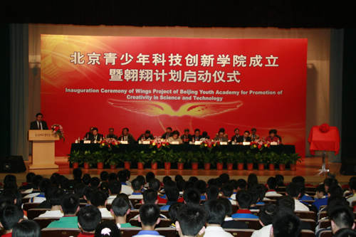 今天,北京青少年科技创新学院正式成立,百余名优秀的高一学生将成为该学院首个培养计划――“翱翔计划”的学员,师从中学名师和高校教授“双导师”,在重点实验室中进行科学研究。这是全国首个面向中学生,以培养拔尖创新人才为目的的机构和培养计划。