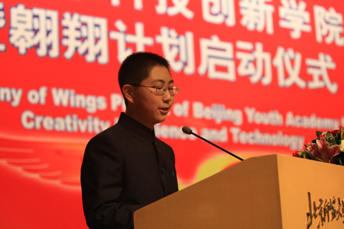 我校高一年级学生任文正作为北京市首批“翱翔计划”学员代表在大会上发言。
