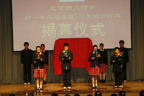 我校初一年级举行迎奥运倒记时100天庆祝活动