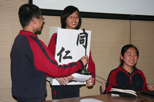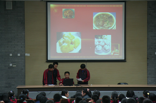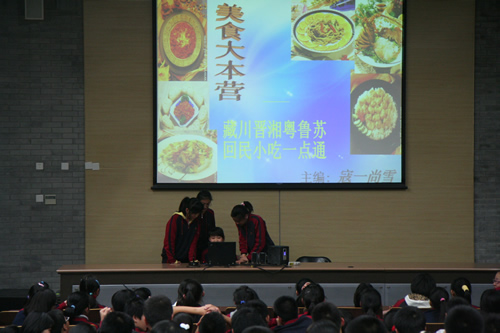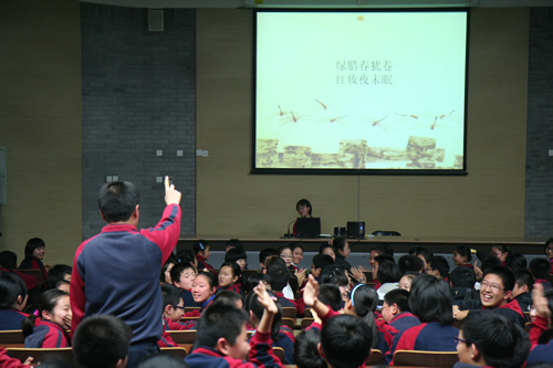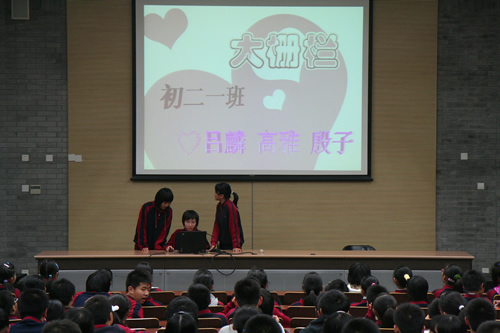 11月11日下午,年级全体师生济济一堂,在学校南阶梯观摩优秀成果展示。虽然活动长达2个小时,但自始至终,同学们都展现出高度的兴致和良好的互动。各班代表利用精心制作的PPT文稿,进行绘声绘色的讲述,把大家带入了博大的传统文化的世界,不时赢得阵阵掌声。其中,初二(5)班荣燕超小组的《片言谁解诉秋心――<石头记>》,并未针对《红楼梦》泛泛而谈,而是以从容淡雅的笔触、悲悯细腻的情怀,简略而精当地分析了黛玉、宝钗和探春三位女性的人物形象,显示出不俗的文学修养,引起了台下的共鸣和赞叹。而初二(4)班张子一小组的《南祭千秋》,更令全场观众眼睛一亮。整部作品以实地自拍视频形式展出,配以丰富多姿的绚丽画面、意味深远的背景音乐、娴熟出色的视频剪辑和挥洒自如的脱稿介绍,独树一帜,技惊四座,把全场的气氛推向了最高潮。