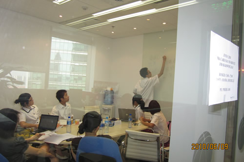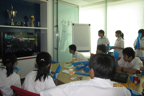 2010 年6月9日,我校JA 经济学课程又组织高一20名同学来到了NBA China参加 “职业见习日”活动。“职业见习日”是国际青年成就(中国)举行的每年一度的企业参观和见习活动。青少年学生通过跟随和观察企业员工的工作,近距离地体验和了解学校所学习的知识和技能在实际工作中的运用,并体会学习与未来职业的相关联系。上午的活动让学生们充分体会到外企人性化的办公生活,惬意而轻松,在加油声中大家观看了一场湖人对凯尔特人的季后赛,享用了一顿丰盛的午餐,下午的活动则真正是一次难忘的“职业见习”,首先是各个志愿者分组与学生讨论他们的岗位和一些日常的工作,交流完毕后他们被随机分开到四个组,进行一个以“Lenovo与NBA合作,请明星皮蓬参加,为一所打工子弟小学修建篮球场,修缮图书馆的活动”的方案设计,并进行了一个一组8分钟的演讲。最终马雨晴、陈阳、刘畅、刘烨、李泽隆同学组成的小组赢得了方案设计的第一名。这次活动让学生们收获甚多,深刻体验到职场工作的不易,团队合作、外语学习、沟通协调等能力的重要性,以及对培养高度的社会责任感、树立志愿服务精神的强烈认同。