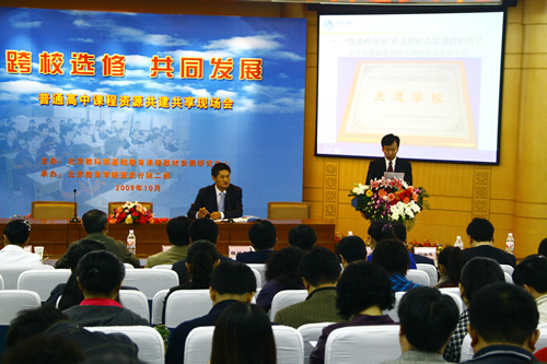 2009年10月24日,由北京教育科学研究院主办、宣武区教委承办的“宣武区普通高中课程资源共建共享现场会”在育才学校举行。会议以“跨校选修,共同发展”发展为主题,向北京市各区县教委和高中校长、教学干部介绍了宣武区“高中跨校选修项目”实施情况。优米app下载直播平台积极投入宣武区“共建共享工程”,作为课程开发主体校参与跨校选修项目,提供荣获“北京市基础教育教学成果奖”一等奖的“生命伦理学课程”作为跨校选修课程。现场会上,我校生物教研组董晖老师的“动物福利专题”公开课和我校综合课程处李磊主任“共建出特色,共享促发展”的主题发言受到各界好评,由我校教师编著、教育科学出版社出版的《生命的凝视――生命伦理学青少年读本》受到与会人员的普遍关注和欢迎。