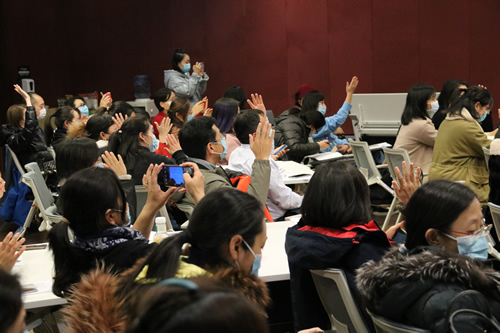 此次活动特别邀请了北京市关心下一代工作委员会“智慧父母家长课堂”特聘心理学讲师、北京电视台“第三直播室”特聘心理专家、我校高二年级学生家长张涛先生与初一家长开展交流。张涛先生非常接地气地从刚考完的期中考试说起,引导各位家长正确看待考试及考试与孩子、家长的关系。他运用生动幽默的语言和大量鲜活的事例介绍了青春期孩子身心发育的特点,更现身说法向大家展示了如何运用心理学沟通五步法有效与孩子沟通。沙龙中家长们还进行了角色扮演、案例分析,体会不同沟通方式带给孩子的不同感受,交流自己在教育孩子过程中的困惑与心得。