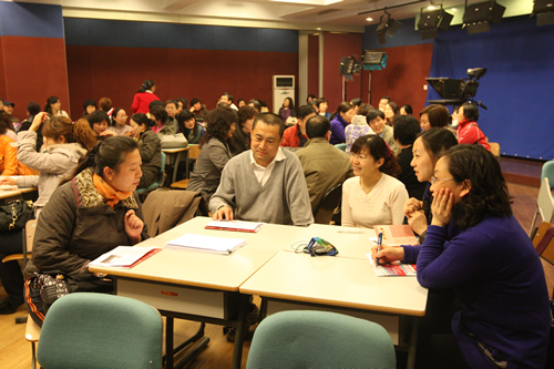 3月19日下午,别开生面的师长心理论坛在我校举行。初一年级百余位家长和年级的班主任老师分小组围坐成圈。大家首先在心理教师沈湘秦的组织下“热身”互动,介绍自己。沈湘秦老师围绕青春期孩子的需求和家长应注意的问题,带领大家在听、看、想的同时,还用“头脑风暴”、“我想知道谁和我一样”等互动活动加深大家的体验。接下的小组讨论更是异常热烈,家长们就隔代教育、如何对待孩子早恋、孩子在家发脾气怎么办等问题提出问题、交流经验、相互支招,老师们也不时地加入讨论,谈自己对所说问题的看法。论坛形式新颖、生动活泼,帮助家长更好地了解了学生的身心发展特征,有利于促进家校沟通、形成教育合力,为孩子的健康成长创造良好环境。
