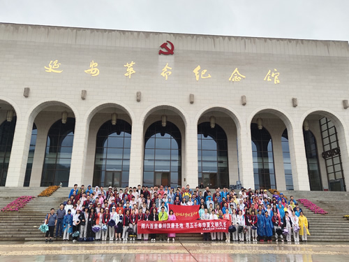 在革命圣地延安,蒙蒙细雨为同学们的参观学习平添了几分肃穆之感。同学们参观了宝塔山、延安革命纪念馆和杨家岭中共七大会址,深刻体会到了宝贵的延安精神、南泥湾精神,白求恩精神,张思德精神;在壮美的壶口瀑布,同学们高唱《黄河大合唱》,朗诵“黄河之水天上来”,感受作为华夏儿女的骄傲与豪迈;来到世界八大奇迹之一――秦始皇兵马俑,同学们领略到了中国古代辉煌文明的神奇魅力;参观碑林博物馆,同学们感受到了中华书法与篆刻艺术之美;走进陕西历史博物馆,更是感受到了八百年大周威赫、强秦横扫六国的气概和汉唐盛世的繁荣昌盛,看到了一幅幅恢弘的历史画卷就曾在脚下这片土地上真实地展开。登上明城墙,一眼千年,目光所及,摩天大厦与古代城楼并存,现代与历史的碰撞与融合彰显了古老中国迸发的勃勃生机。