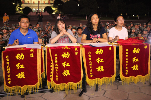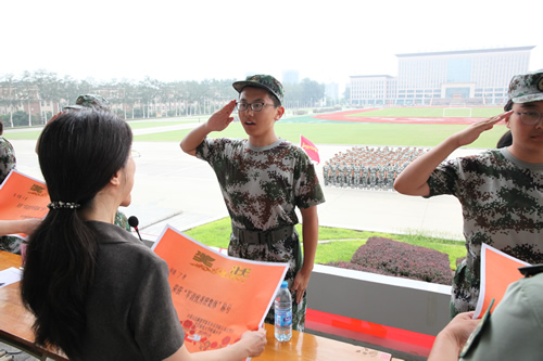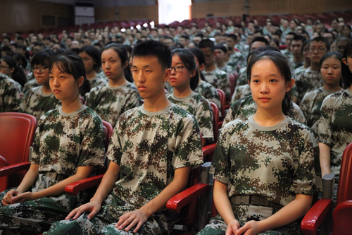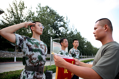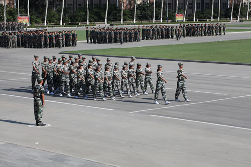 19日回京后,同学们又回到学校操场,参加军训恢复训练,并于22日完成了向家长和学校领导的军训汇报表演,向一直默默支持同学们的家长们展示了九天的军训的成果。汇报演出的最后,梁原草副校长讲话,他代表学校向给予军训活动大力支持的教官、老师和家长们表达感谢,希望同学们将在军营学到的军队的好品质、好作风在今后的学习生活中传承下去,为三年后接受祖国和人民的挑选做好充分准备。