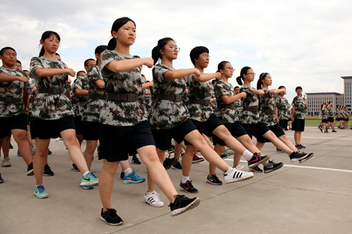 在为期九天的军训中,同学们在教官的严格要求与耐心指导下,学习了基本军事知识,苦练各项军事技能。8月的石家庄暑热蒸腾,即使阵雨,也难带来片刻清凉。同学们的训练服湿了又干,干了又湿,但同学们都咬牙坚持,毫不懈怠,严格地按照教官的要求完成各项动作:拔军姿昂首挺胸,巍然如松;踢正步,坚实有力,落地有声;走队列,整齐划一,气势如虹。经过几天磨砺,同学们一改往日的懒散,身姿挺拔,眼神坚毅,口号声威武雄壮,响遏行云。三次会操比赛,同学们更是团结一心,众志成城,为班级的荣誉而奋战,展现出附中学子的风采。