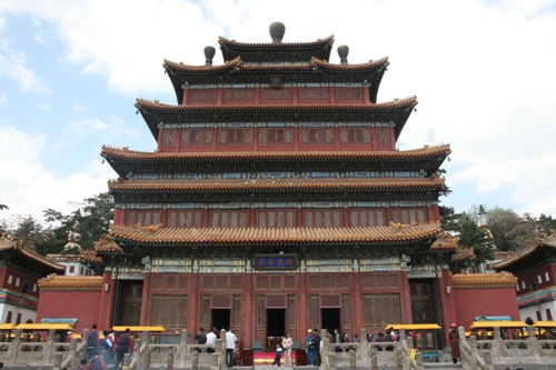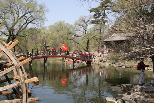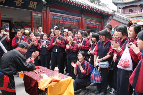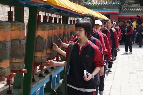 4月26日至27日,高二年级组织学生前往风景秀丽、名胜古迹荟萃的承德进行游学社会实践活动。同学们参观了世界文化遗产、我国现存最大的皇家园林――避暑山庄,漫步在皇家园林的小径上,欣赏着湖光山色、亭台楼榭,感受到满清王朝由兴到衰的沧桑历程,不由得去思索……。学生们还游览了著名的藏传佛教圣地――小布达拉宫和全国少有的汉藏结合式庙宇普宁寺,体会中国多民族建筑艺术的精华。此次活动丰富了学生们的阅历、开阔了大家的眼界,使每位同学对我国伟大的文化和悠久的历史有了更新、更深入的了解!