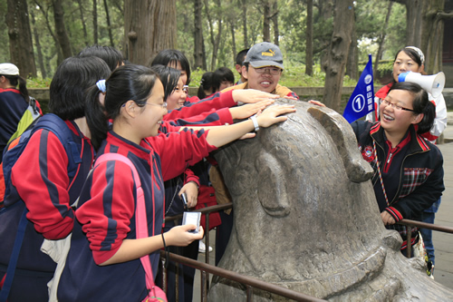 “千年礼乐归东鲁,万古衣冠拜素王”。在孔庙、孔府、孔林,同学们与文化先哲亲密接触,瞻仰浩瀚碑林拜祭圣人之仁义正气,留恋古韵殿堂长叹王朝之兴衰更替,尽数苍劲古柏回望历史的无情变迁,聆听幽静茂林响彻千古的精神召唤……这是中国历史的洗礼,是传统文化的涤荡,更是东方艺术的撞击。通过游览,大家对儒家文化有了更加深刻的认识。