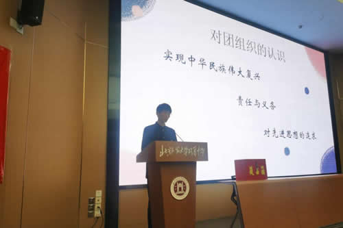 全体团员代表在上一届团委副书记高三9支部刘雨霏的带领下,再一次重温入团誓言。