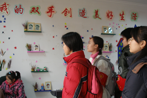 融合活动开展前,服务队的同学们在启蕊楚老师引导下参观了智障学生的教室、活动室、宿舍,还欣赏了他们自己制作的手工艺品。随后,附中的学生和启蕊的学生进行了热闹亲切的拔河比赛及“吹泡泡”游戏。活动结束后,附中的学生们感慨万千,他们不仅从这些残障儿童身上看到了不输常人的坚韧力和创造力,更体会到他们对待生活的认真与热情。