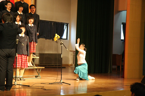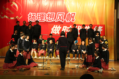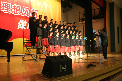 红色的大幕徐徐拉开,《青春舞曲》、《长城谣》、《送别》……这些耳熟能详的歌曲得到了同学们完美的诠释: