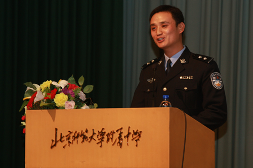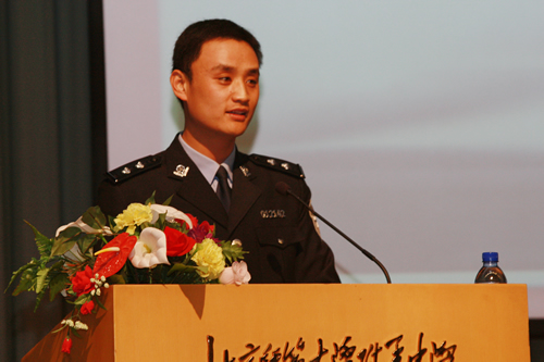 一位普通的年轻交警,成为了网络名人,随着工作和生活见诸互联网,这位民选的北京最帅交警,感动了我们每一个人。他就是我校的校外辅导员,孟昆玉警官。在本学年的开学典礼上,孟警官曾和我们全校师生分享了他的工作体会和人生感悟。在五四青年节前夕,已经受邀前往上海世博会,即将出发的孟警官,又专程来到了我校,在附中百年会堂与高一、高二年级学生再一次进行了近距离的交流。