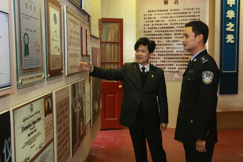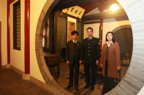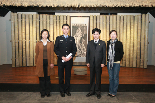 报告会前,梁原草副校长、况莉主任陪同孟警官参观了我校的杏坛、三味书屋和钱学森纪念馆。