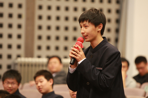 讲座后,同学们与于丹教授、“航天英雄”杨利伟、中央电视台新闻中心主持人康辉围绕“网络与学习”这一话题,联袂上演了一场别开生面的“知识与思想大碰撞”。同学们较好的文明素养及高水准的现场提问,获得嘉宾们的高度赞赏。