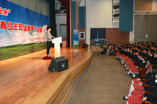 由《中国青年报》和中国青少年犯罪研究会、共青团北京市委、新浪网共同发起主办的“大家E起来――青少年网络素养大讲堂”开讲仪式及第一次讲座,于5月17日下午在我校百年会堂举行,初一、初二年级全体师生到场聆听。