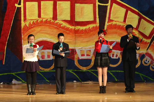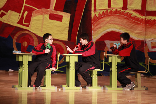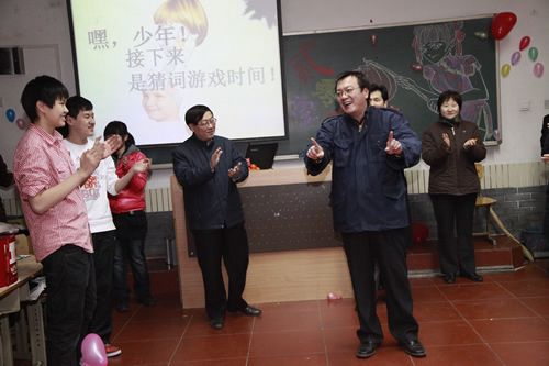 2011年12月30日、31日,附中校园内一片欢歌笑语,各年级分别在“优米体育总部地址电话会堂”举行了新年联欢会。校领导在百忙之中来到礼堂向同学们致以亲切的问候,刘沪校长为大家做了热情洋溢的新年致辞。