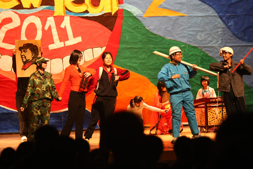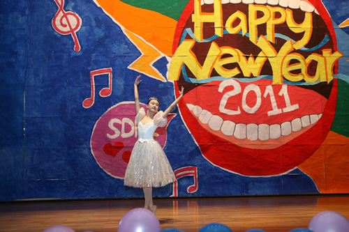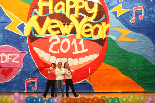 新年活动是附中的传统,学校视为锻炼人、教育人、弘扬附中文化、增进师生凝聚力的重要契机。联欢会全程由校学生会承办,从节目审查、主持人选拔到礼堂布置、联欢会举行、灯光音效等,全由学生们自己组织实施。在歌声与笑声中,师生们送走了不平凡的2010年,迎来充满希望的2011年。