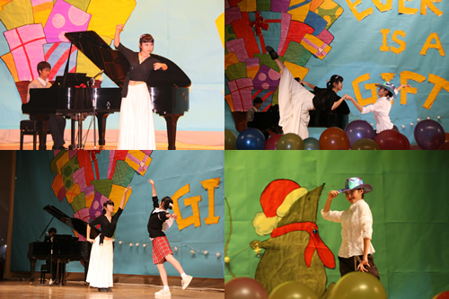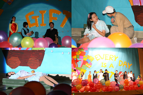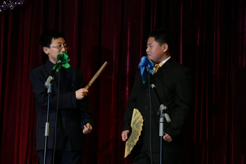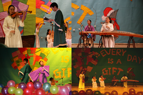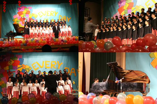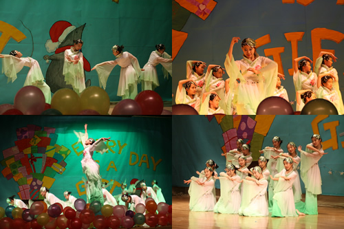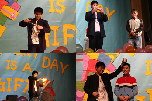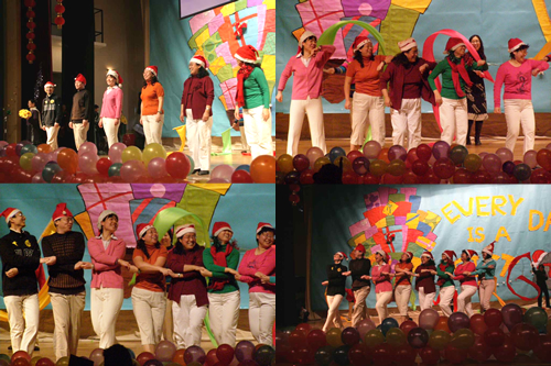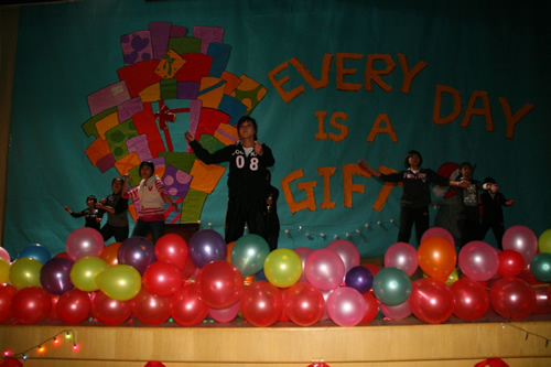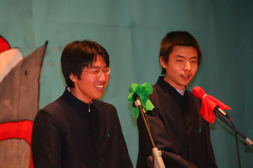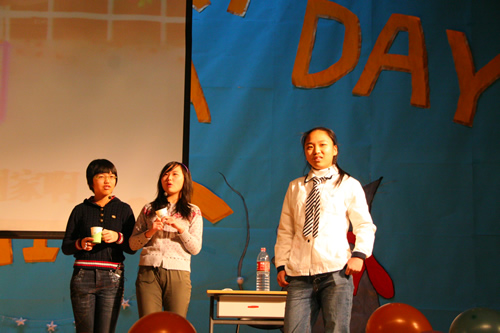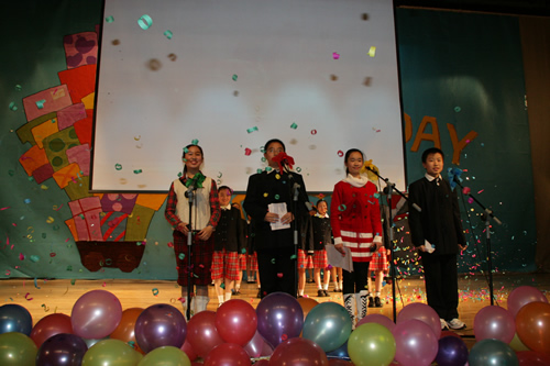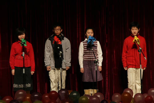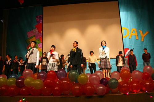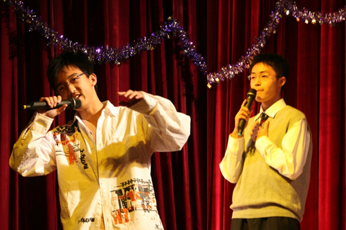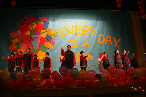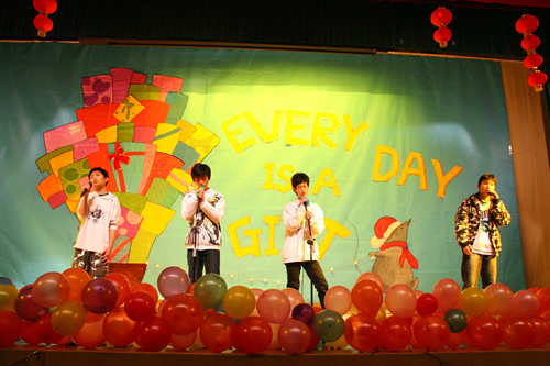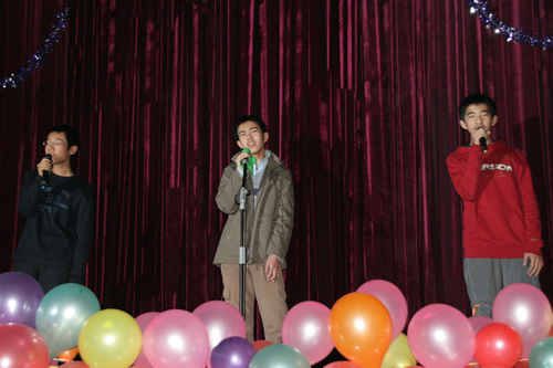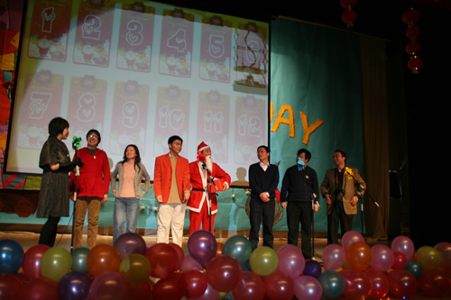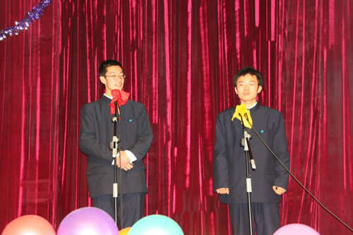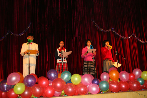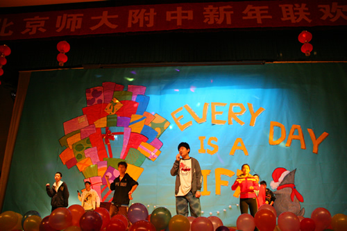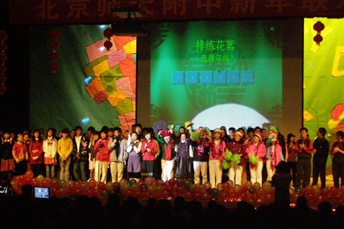 2007年12月30日、31日,由学生会承办的初一、初二、初三、高一和高二各年级五场2008新年联欢晚会在学校礼堂隆重举行。校领导在百忙之中为各年级送来祝福,刘沪校长代表讲话。各年级师生都非常精心地准备了内容丰富、形式多样的舞台节目,营造了欢乐的节日气氛。一台台晚会不仅展示了我校师生非凡的才艺,而且增强了各年级师生凝聚力,加强了彼此的情感交流。在此次全校范围内的大型活动的筹备阶段及晚会现场的台前幕后,学生会的同学付出了辛勤的劳动,从初审、再审、彩排到正式演出,积极配合、协助各年级工作,成为了新年晚会的另一道亮丽的风景。