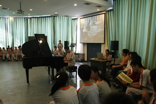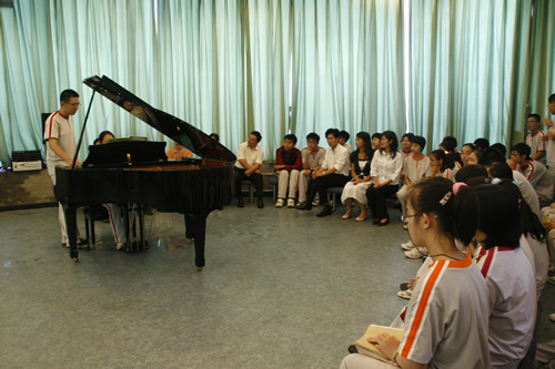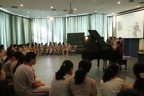 9月10日中午,由附中学生会文艺部主办的钢琴专场音乐会在综合楼音乐教室成功举办。音乐会邀请到学校有钢琴演奏特长的同学和老师共同表演,他们在音乐会上用灵巧的手指为师生们诠释了钢琴艺术的优雅与华丽。这场精彩纷呈的视听觉盛宴是学生们为庆祝第24个教师节,献给全校师生的一份特别礼物。