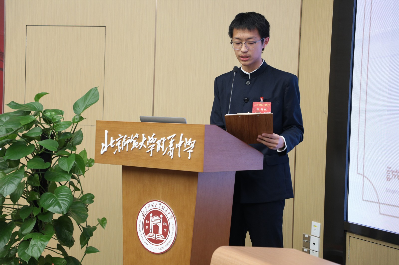 校学生会杨辰安同学向大家报告了此次大会的提案工作。此次提案征集活动收到了来自全校各个年级的提案50余份,涵盖校园基础设施建设、校园餐饮事项改进、学生系列活动创新等几大类,为更好地创造促进学生发展的校园环境提供了创新可行的建议。学校领导为获评优秀提案的提案人同学颁发了奖状和纪念奖品,鼓励更多同学们继续发挥主人翁精神,关注校园生活,关心学校公共事务,共同将附中建设为更加美好的校园。