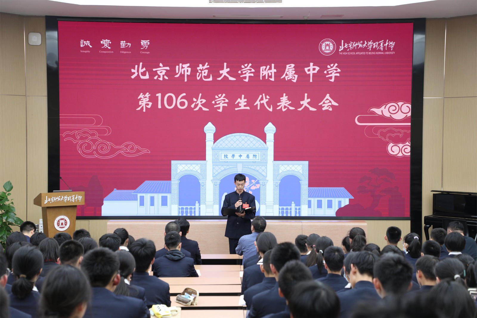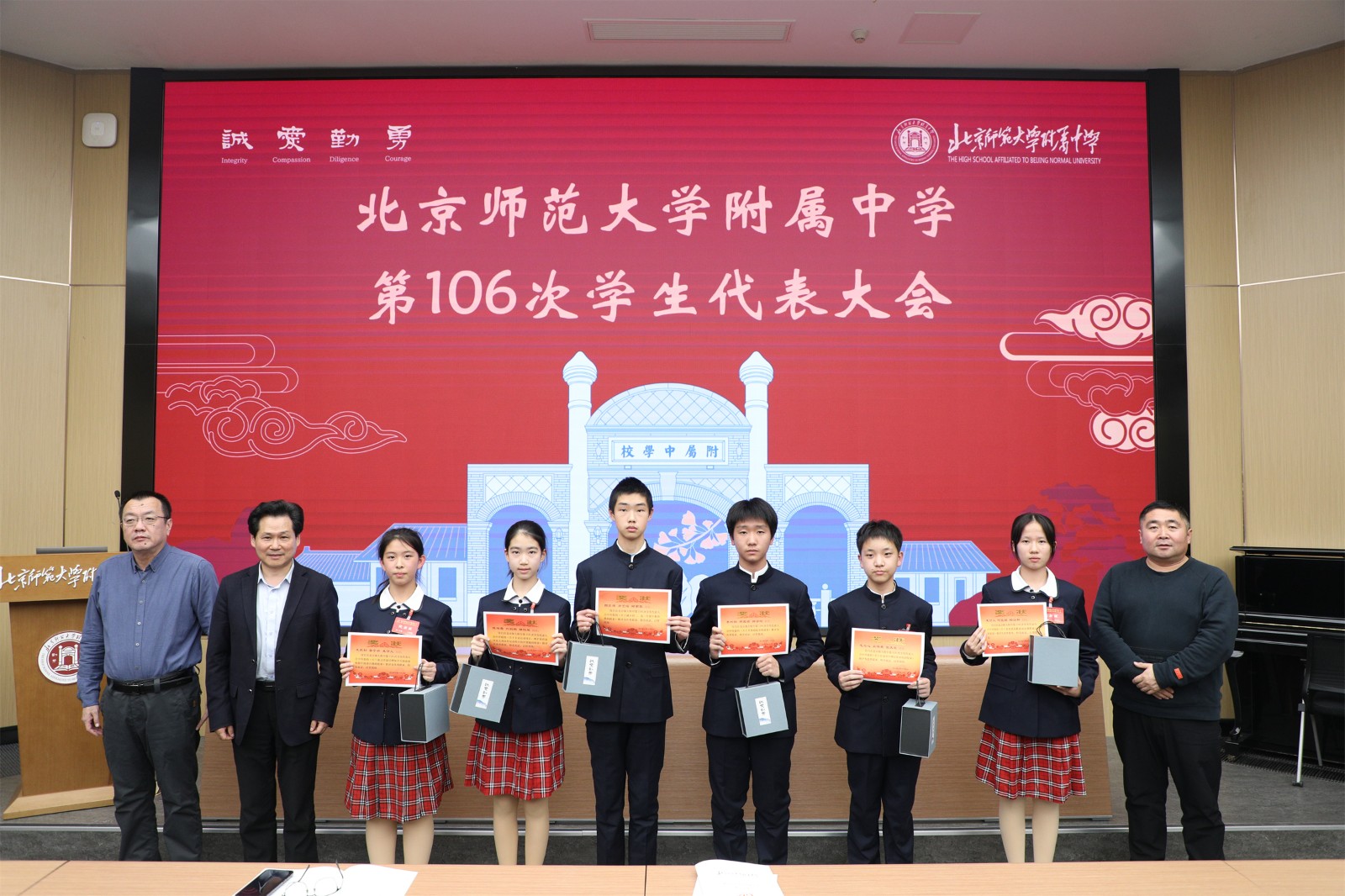 2024年11月29日,我校召开第106次学生代表大会。校党委许建勇书记、梁原草副校长、学生处副主任白朝鲁老师、初二年级副组长王辰老师出席了会议。此次大会共有213名学生代表参加,涵盖了我校各非毕业年级。