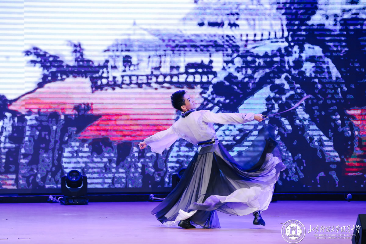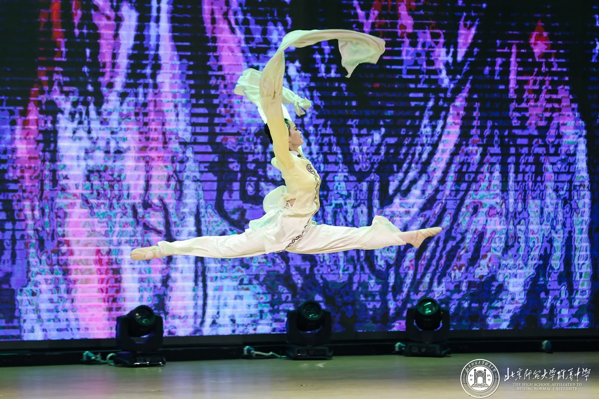 演出以藏族舞《心中的歌》和《民间舞集粹》拉开帷幕。同学们以欢快的舞步、洋溢的笑脸欢迎着台下的观众,向观众们展现了附中学子热情似火的青春。紧接着的舞蹈《遇见》,诉说了一名附中学子与敦煌壁画上的飞天相遇的奇妙故事,表达了对于敦煌文化的热爱之情与传承之心。《古典舞掠影》则充分展现了古典舞之美,演绎出附中学子对中华优秀传统文化的景仰和向往。在经典保留剧目《彩云追月》中,同学们以优雅的舞姿描绘出夜幕中云月相逐之景,抒发了对艺术、对美的追求。最后的群舞《青春》,是专门为附中120周年所创编的舞蹈,展现了祖国的青春、附中的青春、舞蹈团的青春、附中人的青春。同学们眼中有希望,心中有理想,是附中承载着每一位附中学子的青春梦想。此外,同学们通过语言类节目对日夜相伴的附中倾诉,给最亲近的自己寄语,与伙伴对话,跨越历史向赵士炎、钱学森学长致敬,请他们放心,新时代的附中人正继续用青春和汗水书写着祖国的华丽篇章。演出过程中,还以视频短片向大家展现了舞蹈团20年来的发展历程以及舞蹈团毕业生、在校舞蹈团成员对附中120岁的生日祝福。