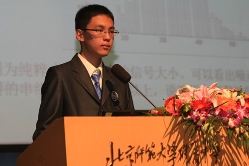 在分论坛活动中,四所物理领域基地校的34名2010级翱翔计划学员进行答辩和作品展示,三十余位来自高校、科研院所的院士、教授作为专家评委对他们的成果进行了评审,我基地校学员戴兴作了主会场答辩。我校作为翱翔计划物理基地校,与北京大学、清华大学、北京科技大学、首都师范大学的五所实验室联合培养学员,自2008年至今已有三十多名翱翔学员在我校参与翱翔计划、体验科研乐趣。